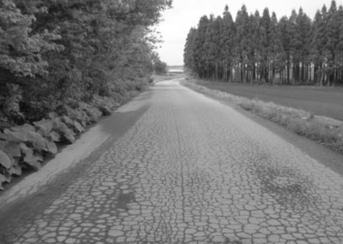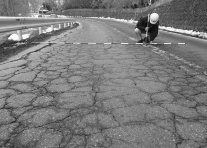 - 凍結融解サイクルによるポットホールと網目状ひび割れ